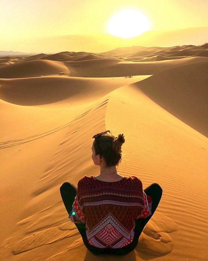 Navštívit poušť Sahara je při cestování po Maroku jedna z věcí, které prostě musíte udělat. Jízda na čtyřkolce po písečných dunách při západu slunce anebo spaní ve stanu na Sahaře jsou přesně ty zážitky, o kterých vím, že na ně nikdy nezapomenu. Výlety do pouště na velbloudech do kempu, ve kterém můžete strávit noc, jsou v Maroku velmi populární a potom, co jsem jeden z nich absolvovala, mohu jen potvrdit, že stojí za to.