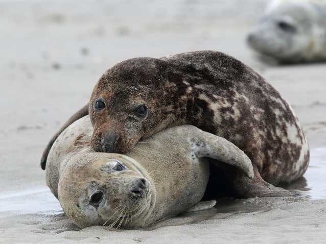 Na sousední menší ostrov Düne se dostanete pouze trajektem. Od hlavního ostrova jej před téměř 300 lety oddělila ničivá bouře. Nachází se na něm letiště, kemp, dovolenkové bungalovy a mnoho pláží. Ty jsou v létě využívány pro koupání na jedné straně. Druhá strana ostrova je domovem největší kolonie tuleňů šedých v Severním moři. V zimě se jim rodí malá rozkošná tuleňátka – z bezpečné vzdálenosti je umožněno jejich pozorování turistům.